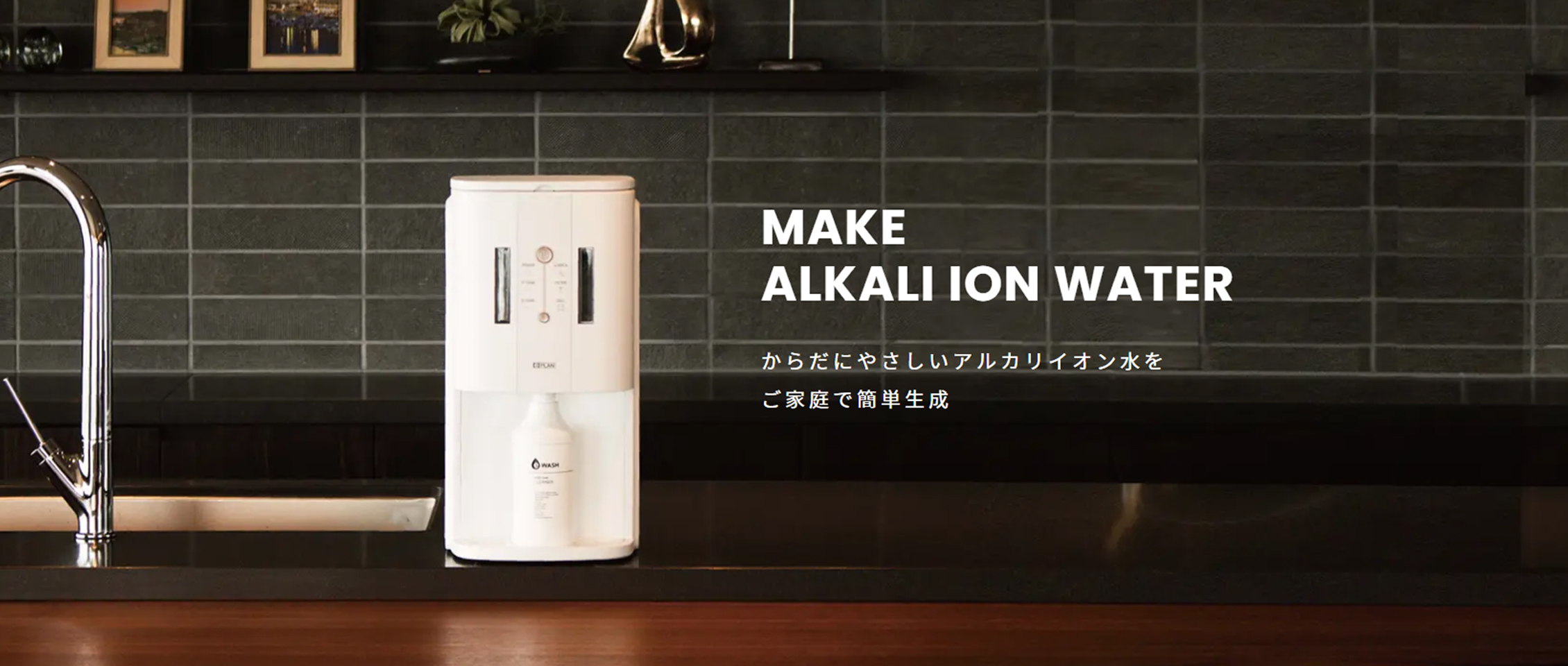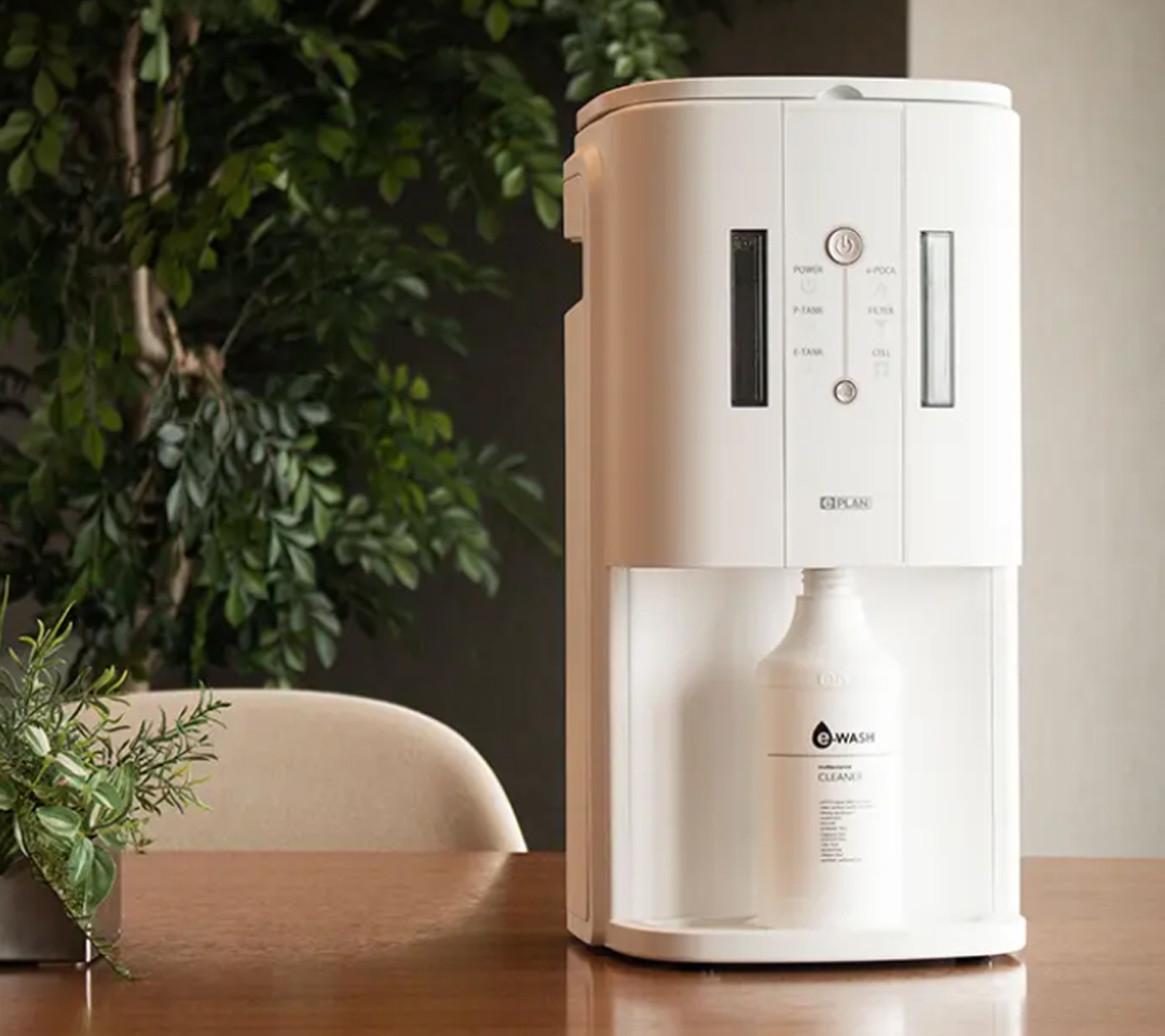 こんな便利で効果的なe-WASHをご家庭や職場で簡単に⽣成して、安⼼して⼤量にご活⽤いただきたいと願い開発された⼩型⽣成装置がe-hope です。⽔道に接続する必要がないため場所を選ばず、スタイリッシュでコンパクトなデザインの⽣成装置はインテリアの⼀部として溶け込みます。